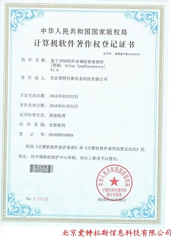 公司又榮獲5項計算機軟件著(zhù)作權:基于移動(dòng)PAD終端的智能巡檢系統、外業(yè)像控刺點(diǎn)軟件、地理信息公共共享與服務(wù)云平臺、基于IPAD的外業(yè)調繪核查軟件、國際經(jīng)貿合作網(wǎng)絡(luò )信息服務(wù)平臺等5項計算機軟件著(zhù)作權。