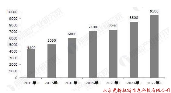 2016-2022年中國地理信息產(chǎn)業(yè)市場(chǎng)規模預測(單位:億元)