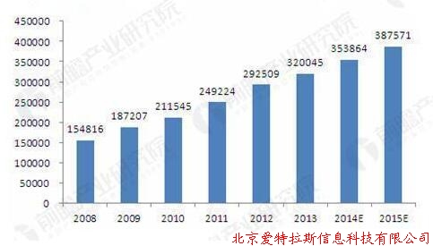 2008-2015年地理信息測繪系統人均服務(wù)總值(單位:元)