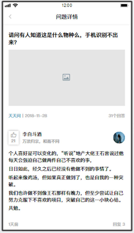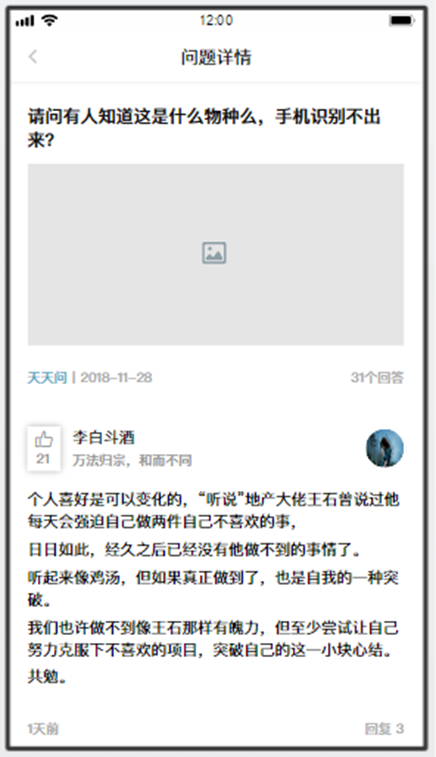 所有用戶(hù)所提問(wèn)題的列表,點(diǎn)擊其中一條,進(jìn)入到問(wèn)題詳情。
