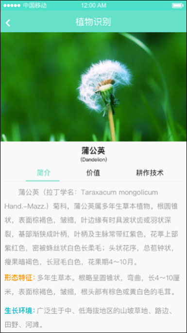 基于上傳的植物照片在線(xiàn)識別植物科屬種,并給出該植物的形態(tài)特征、地理分布、生態(tài)特征、飼用價(jià)值、栽培要點(diǎn)等相關(guān)專(zhuān)業(yè)知識,提供手機APP。