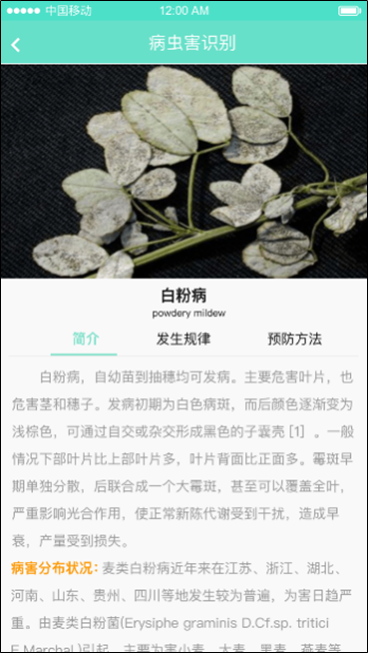 • 作物病害知識服務(wù):病害簡(jiǎn)介、危害、防治措施