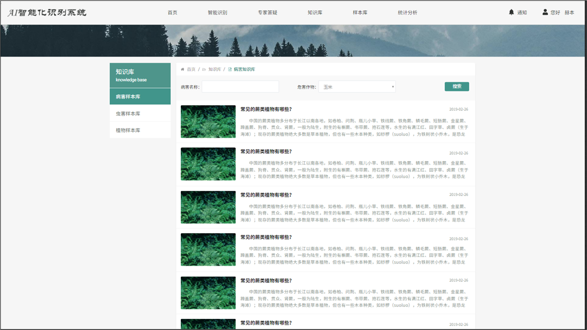 點(diǎn)擊蟲(chóng)害庫/病害庫快捷入口,跳轉到蟲(chóng)害庫/病害庫一級界面。